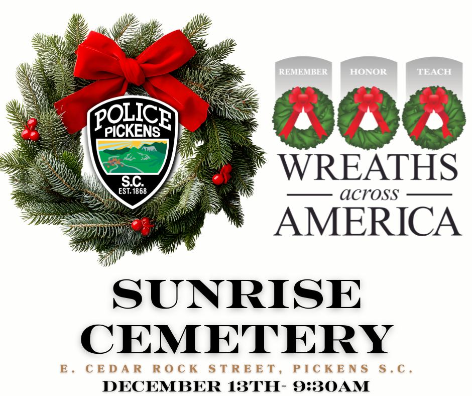 Sunrise Cemetery 603 E Cedar Rock St, Pickens, SC, SC, United StatesThe community is invited to a Wreaths Across America wreath-laying ceremony in honor of our veterans, on Saturday, December 13th at 9:30 AM at Sunrise Cemetery […]